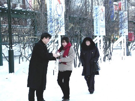撮影を通りすがりの女性に (註:謎のロシア人はこうやって日本人女性に接触を図っているらしい?!) 撮影:Mi |