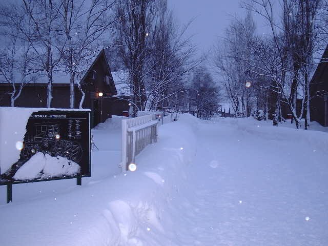 すっかり日が落ちた敷地内と貯蔵庫群 撮影:Y |