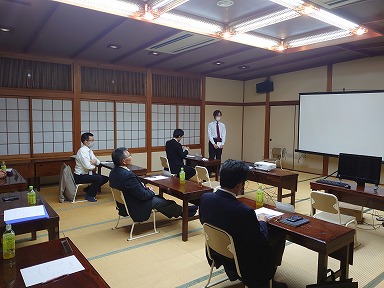 テーマ : 「新型コロナウィルスによる支援制度について」 内 容 : 講師例会 講師 豊岡市商工会支援課主事 羽尻 幸生 氏 参加会員数 10名 |