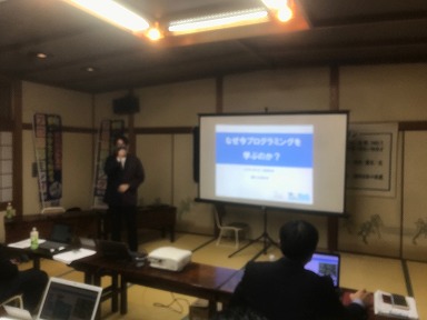 テーマ : プログラミング体験 講 師 : 北村 健太郎氏 猪口 有里氏 内 容 : プログラミングを実際に体験することでその内容を理解する 参加会員数 8名 |
