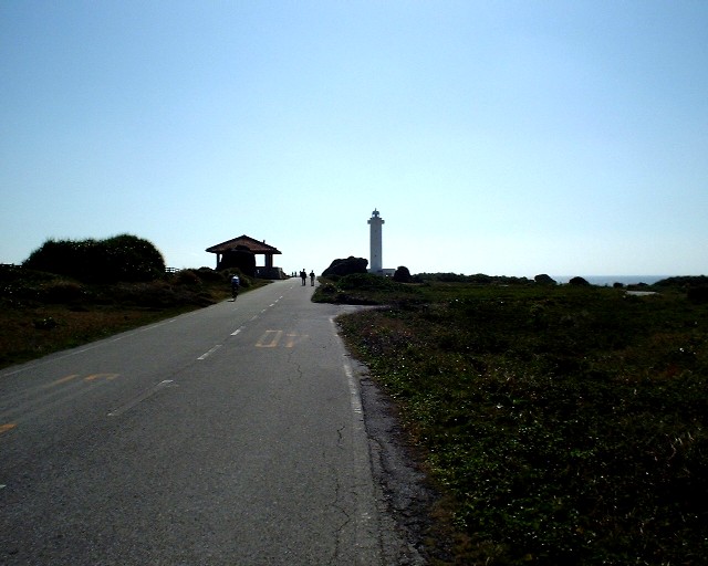 東平安名崎灯台と展望台(逆光) |